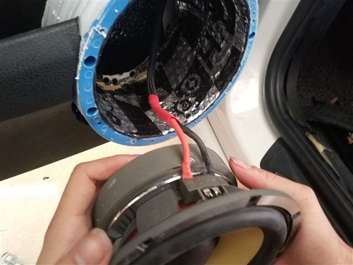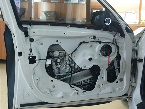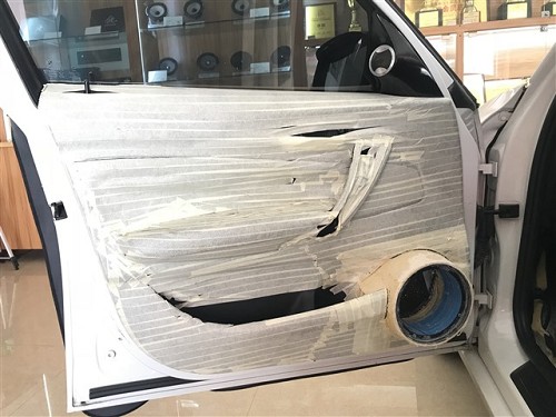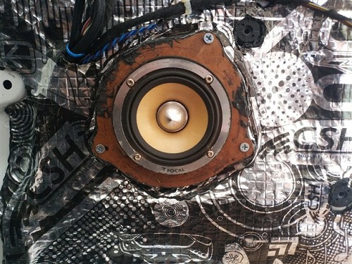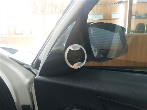 首先在前門位置,技師使用俄羅斯StP小炸彈隔音材料進行了隔音的升級,有效的抑制了門板的噪音,為汽車喇叭提供了良好的工作環境。雖然原車并無高音單元,但是卻為高音單元預留了安裝位置,將法國勁浪165KX3的高音單元安裝在門板三角位處剛好合適,中音安裝在汽車原位,中低音倒模在門板下方,這套法國勁浪165KX3三分頻喇叭,做工精致、用料精良,音色透明、音質柔美細膩,中頻飽滿豐富、低音富有彈性,而且能夠完美適配車內的聲學環境,帶來最佳的入耳效果和聲場表現。