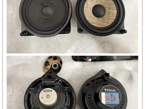 將原車喇叭和升級的法國勁浪喇叭相比較,可以看出原車喇叭使用的材質一般,盆面單薄。再看升級使用的法國勁浪專車專用喇叭,背面采用高性能釹鐵硼磁鐵和鋁質音圈,可將音效提升至前所未有的水平。