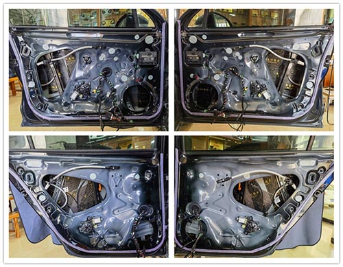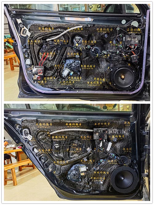大家都知道四門隔音可以提升喇叭音質,為了給汽車的聲場喇叭創造一個良好的工作環境,改裝師使用安德納隔音材料,對汽車的門板做了雙層的隔音處理,這就讓門板形成了一個密封的箱體,既可以減少風噪等噪聲的干擾,同時也能夠在一定程度上增強音樂的立體感。