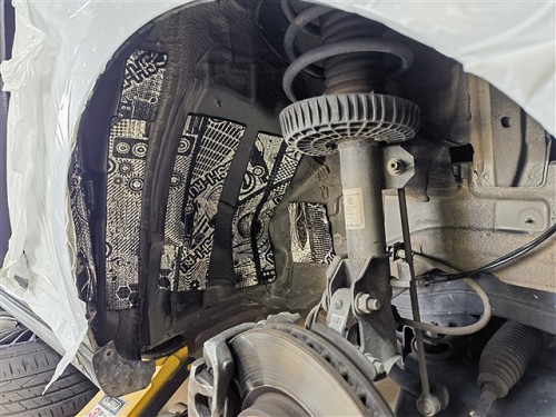 對于后輪弧,我們同樣采用了stp小炸彈,同時(shí)加入了溫莎棉。溫莎棉的高密度纖維結(jié)構(gòu)可以有效吸收聲波,進(jìn)一步提升了隔音效果,讓車內(nèi)更加寧靜。