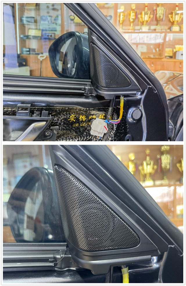 勁浪165A-GL高音喇叭原位無損安裝在門板三角位